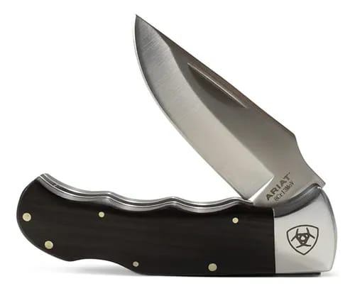 Com lâmina afiada em aço resistente, garante eficiência nas mais diversas situações, enquanto o cabo anatômico oferece firmeza e conforto no manuseio. O design robusto carrega a identidade forte da Ariat, unindo tradição e modernidade em um só produto.